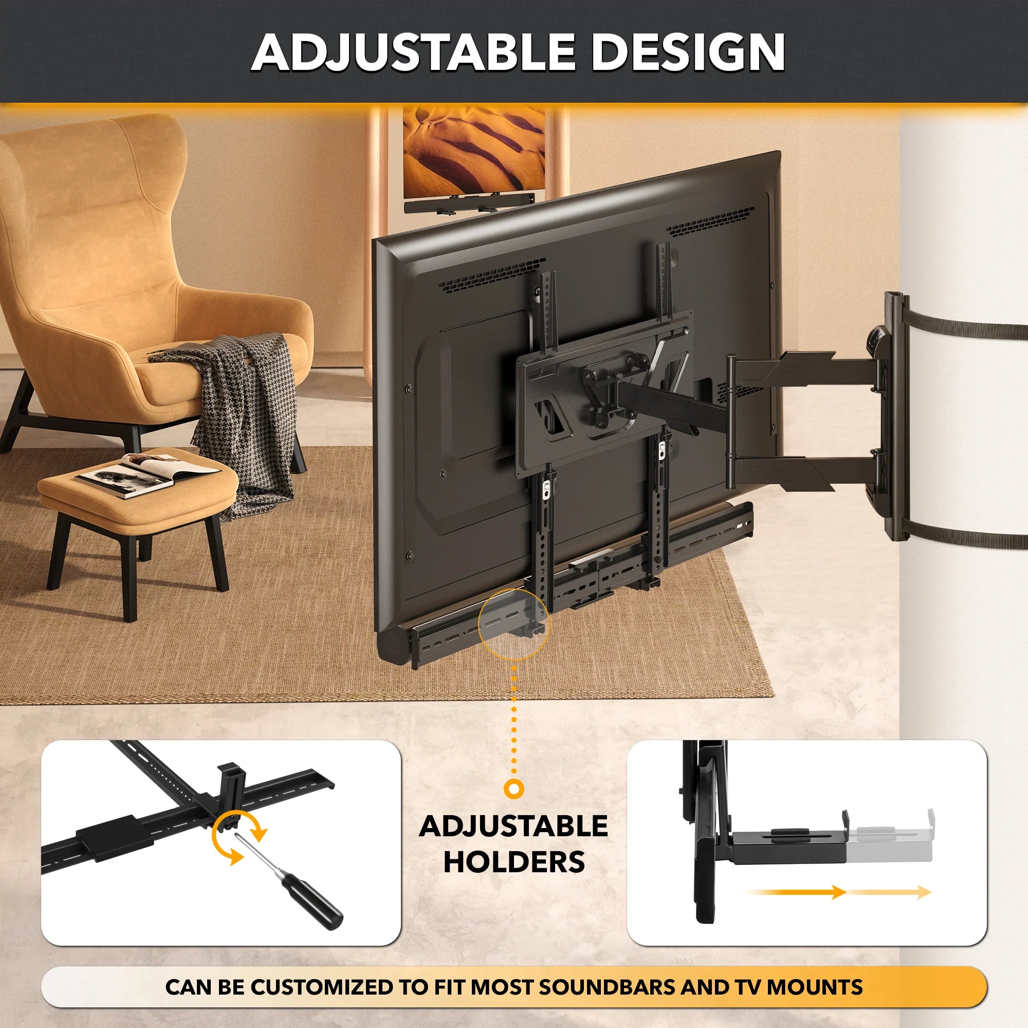 The Condomounts Universal Soundbar Mount is an excellent choice because it attaches directly to your TV’s VESA mounting holes. This means you won’t have to drill into walls or furniture, making installation much easier and damage-free.