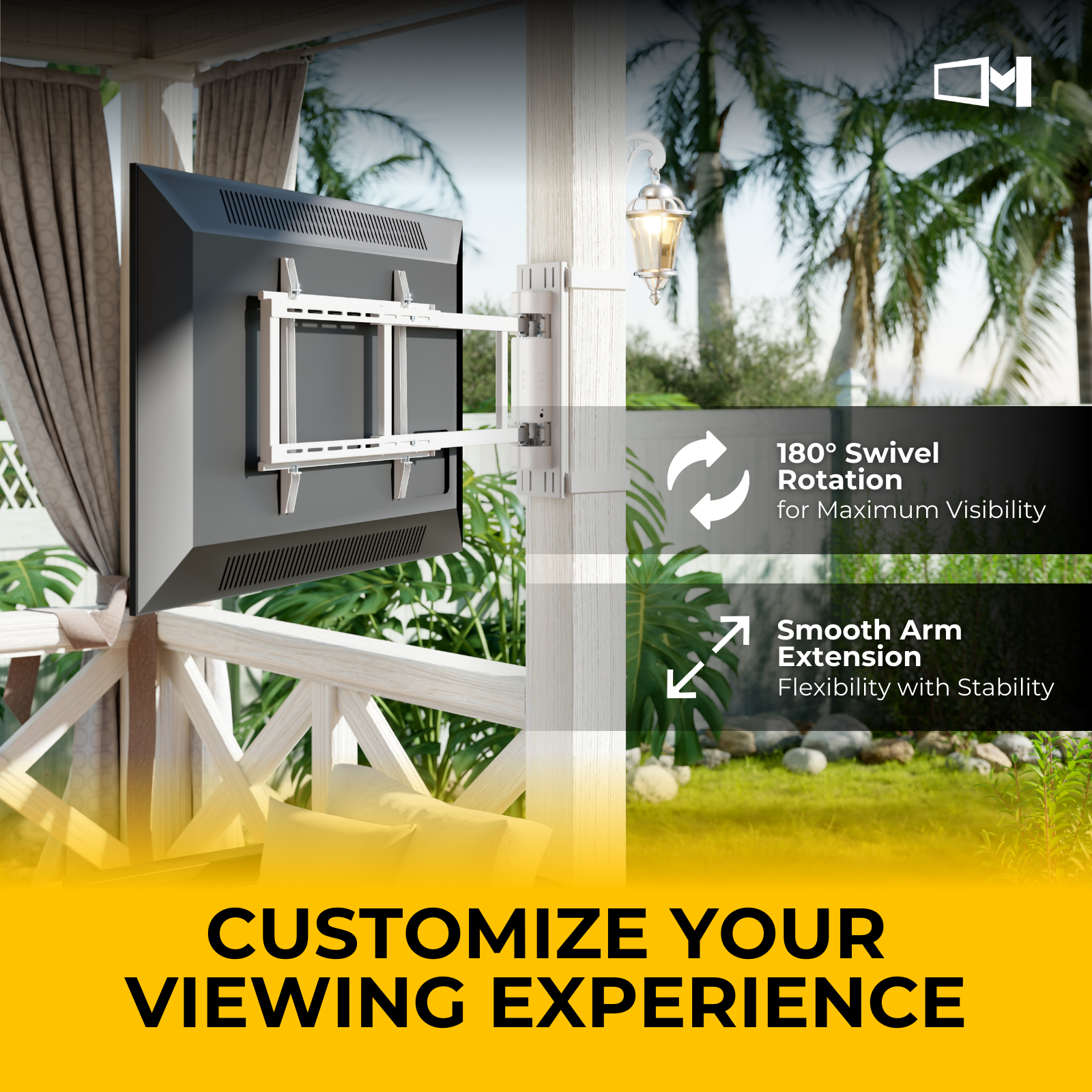 The swinging arm design provides maximum flexibility with up to 180° swivel, tilt adjustment, and smooth extension so you can find the perfect viewing angle from anywhere in the room. Whether you have a flat or curved screen, this mount is VESA compatible up to 600x400, covering all major TV brands.