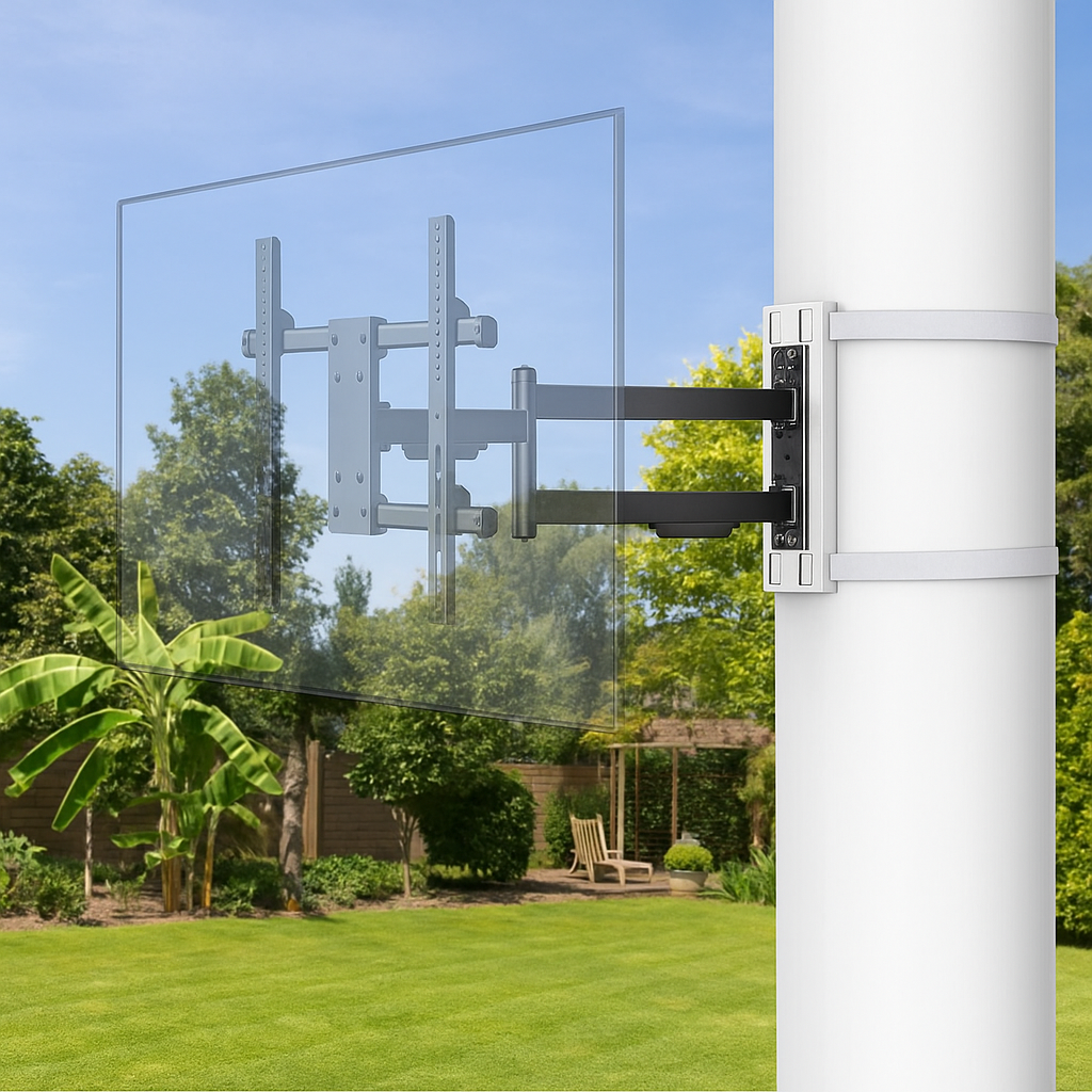Designed for large pillars (8″–48″ diameter / 38″–150″ circumference), it adapts to round, square, rectangular, and even octagonal columns, making it ideal for living rooms, lofts, gyms, event spaces, and outdoor patios. The full-motion design extends up to 25", swivels smoothly, and tilts for glare-free, comfortable viewing from any angle.