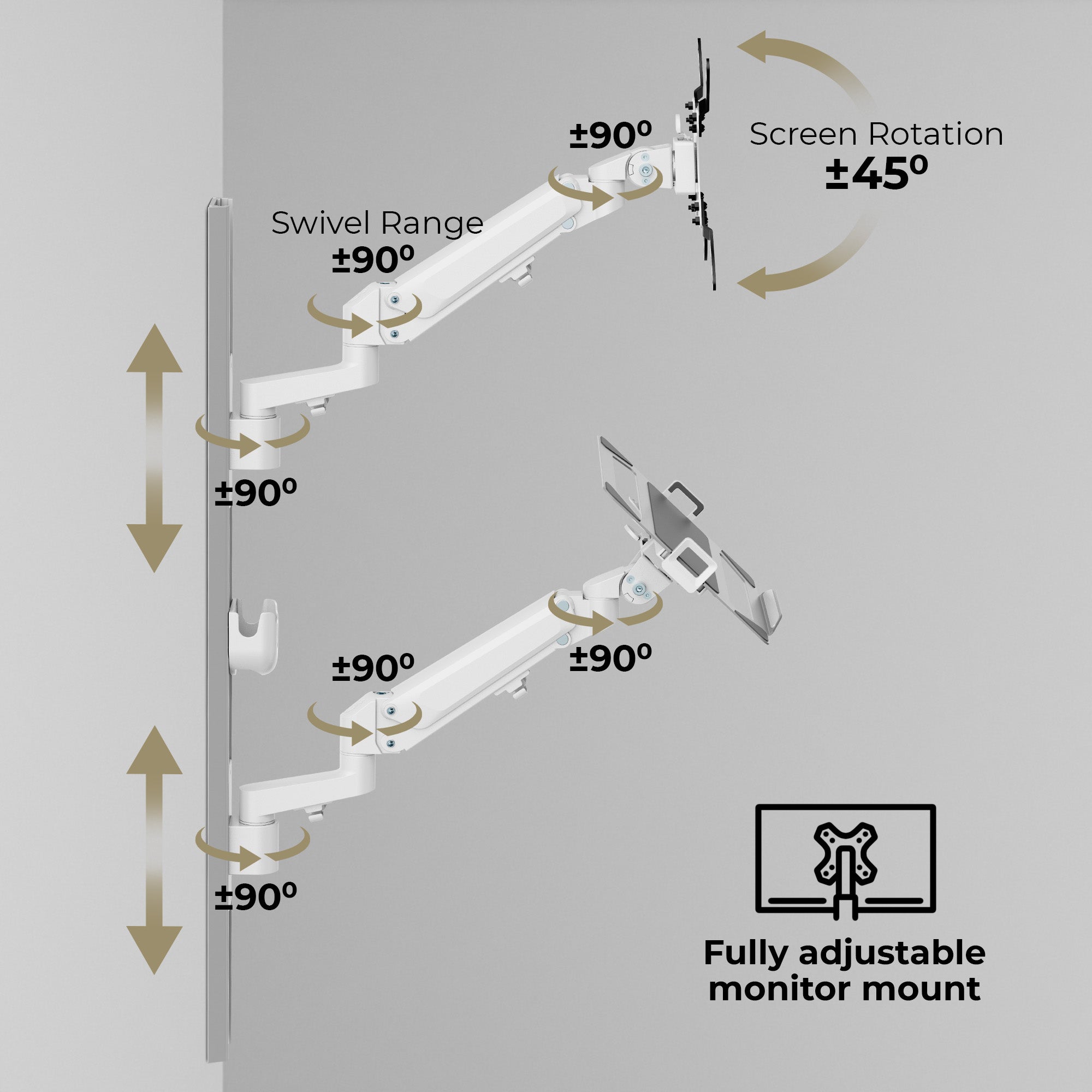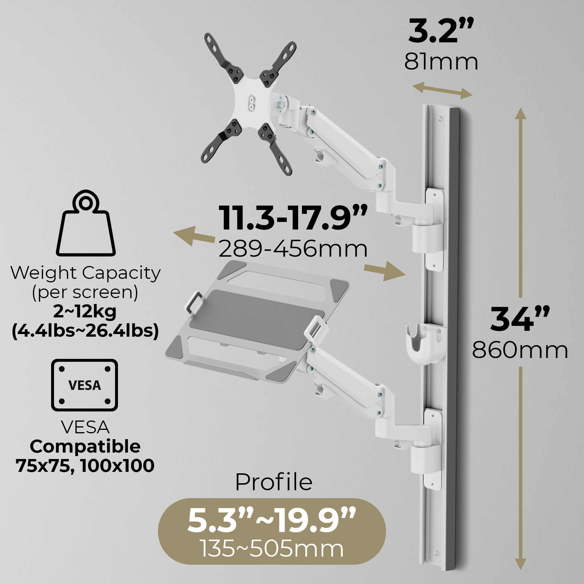 ZeboZap ZLTV8022 Wall Monitor & Laptop Mount with Keyboard Tray, 17"-43", White