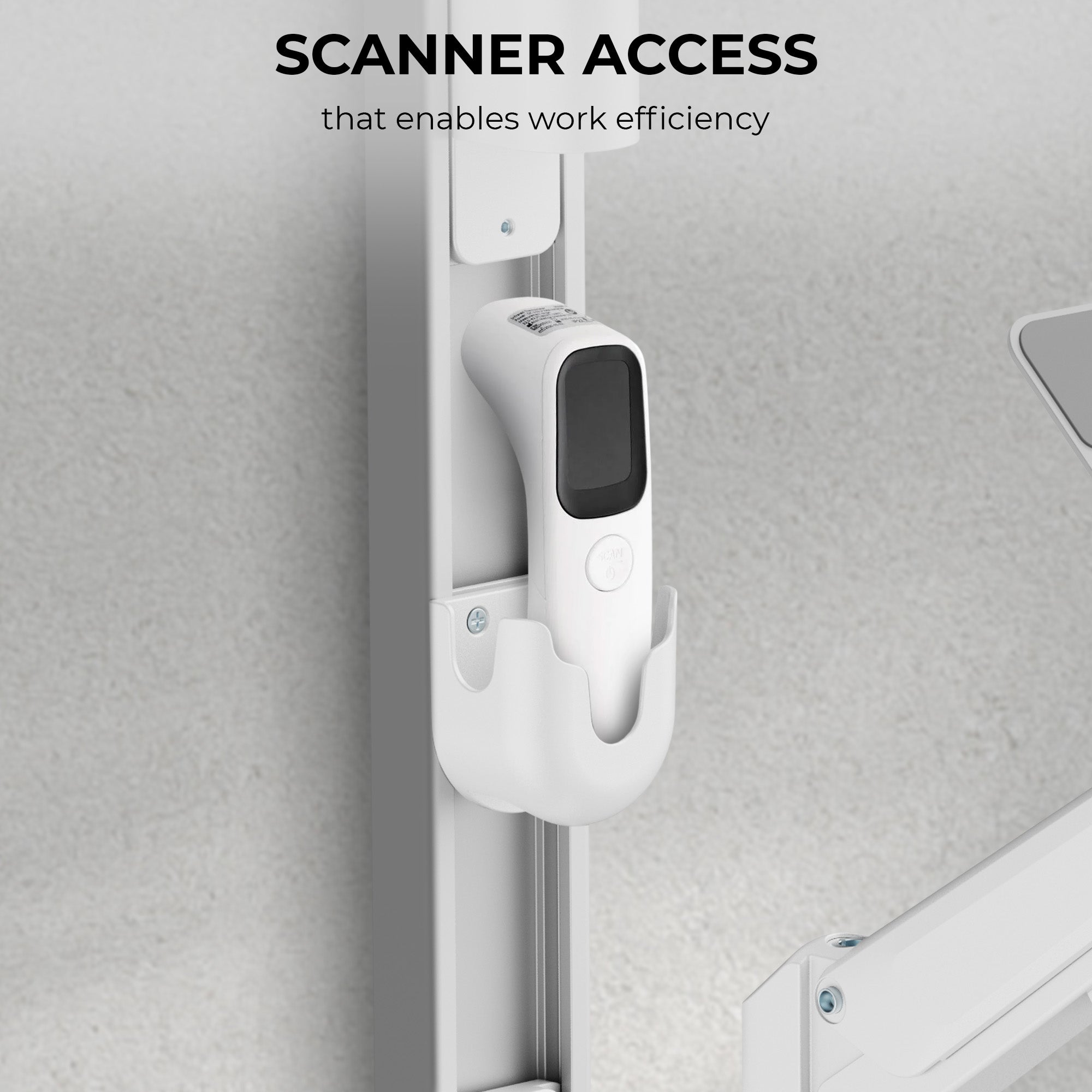• Workstation-Optimized Wall Setup – Ergonomic monitor wall mount with wide keyboard tray, sliding mouse pad, and scanner holder. Ideal for medical or office use to save space and boost productivity.