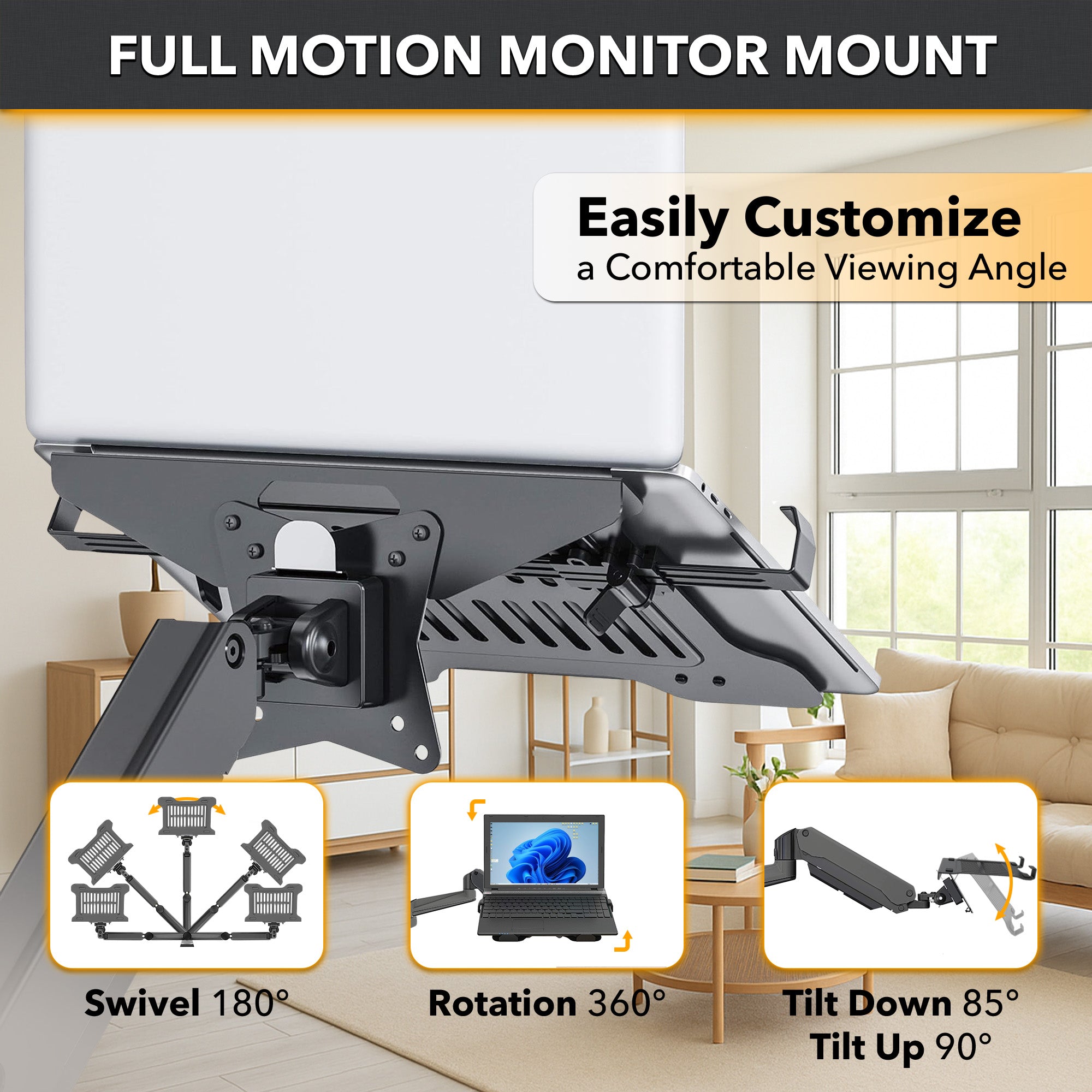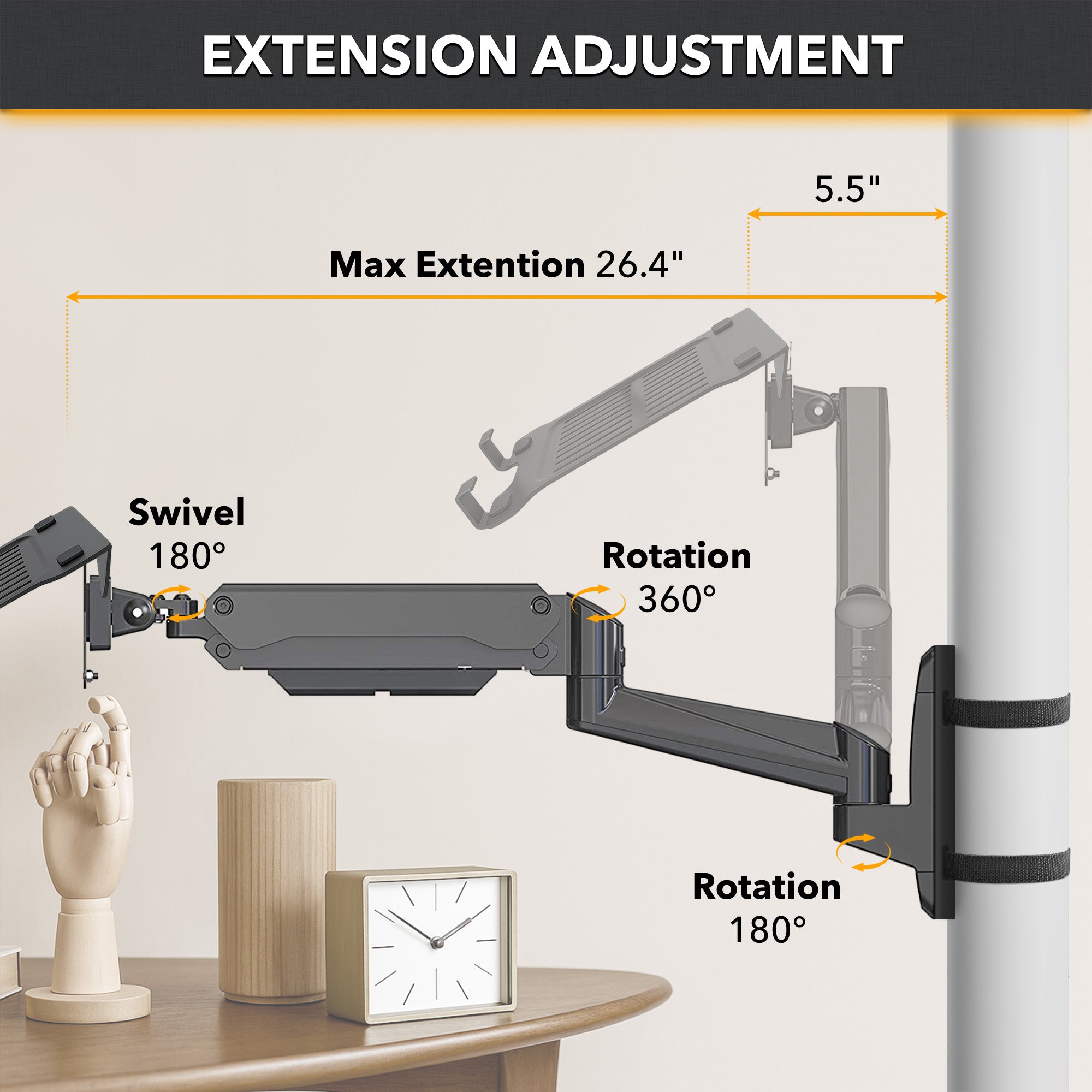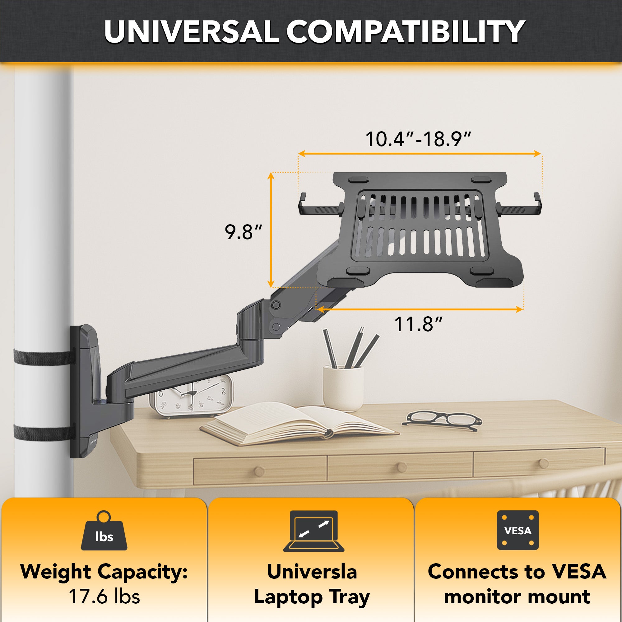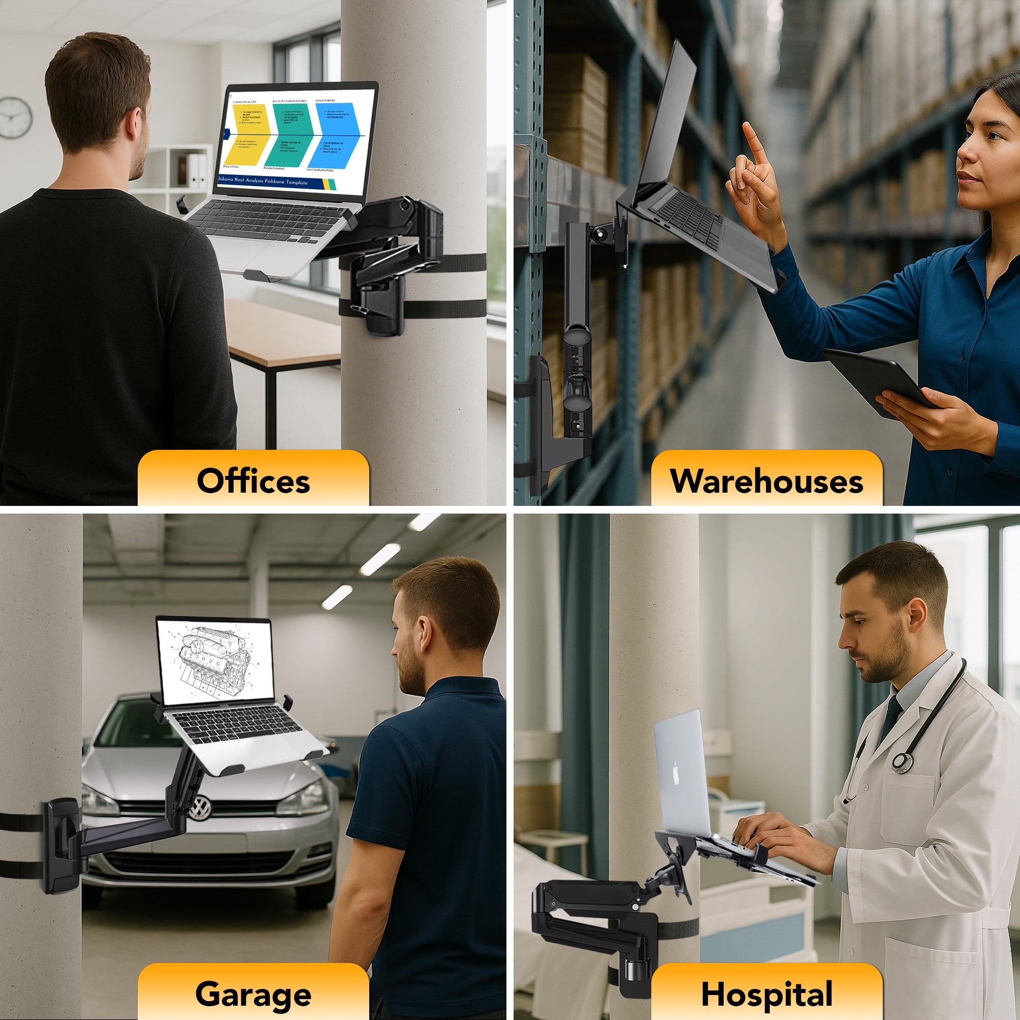 The ZEBOZAP CLMLTP1016 Laptop Wall Mount Holder is the ultimate solution for mobile, outdoor, and industrial workspaces. This tool-free laptop mount securely straps to round or square poles (3"–16" diameter)—no drilling required. Designed for versatility, it supports laptops up to 19" on an anti-slip ventilated tray, keeping your device cool and secure during use. With full 360° rotation and tilt adjustment, it delivers ergonomic comfort anywhere you work—garage, warehouse, patio, gym, or set. Integrated cable clips keep wires neat, making this a great laptop desk mount or computer wall mount alternative. Whether you're a fitness coach, remote worker, or creator, this pole mount adapts to your needs. Seamlessly integrates into the ZEBOZAP modular system for creative, mobile, and professional setups.